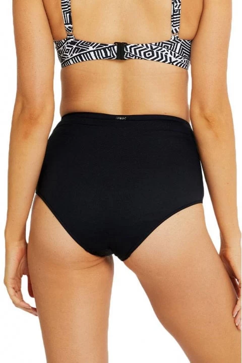 Baku’s Calcutta Sash High Waist Bikini Pant features flattering contrasting sash tie at the front with a high waist and full bottom coverage. Calcutta is an intricate excitement of geometric shapes and kaleidoscope lines. Printed on our Spanish luxury texture giving it an almost 3D effect.