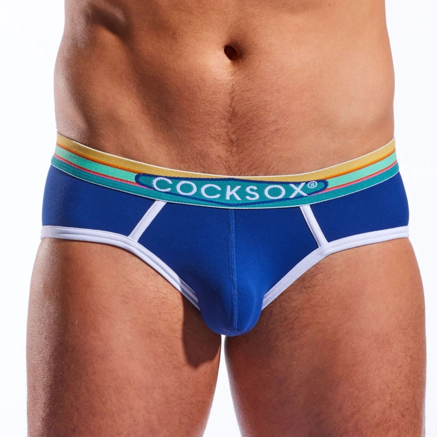 Cocksox meets retro style! Designed for active sportsmen, this brief features the Cocksox contour pouch for maximum comfort support, a butt hugging seamless wrap around back and robust piping.