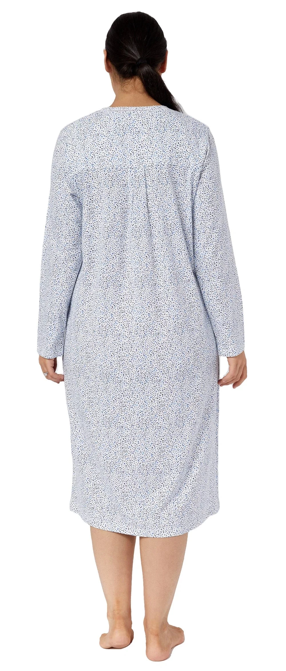 Look and feel your absolute best in this gorgeous nightgown. Crafted from soft cotton jersey and featuring a beautiful pink toned confetti print, it has a stylish Vee neck with delicate picot crochet trim. Perfect for bedtime or lounging around the house.