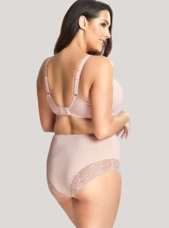 Inspired by meadow flowers, the Charley Brazilian teams light diamond mesh fabric with stretch lace for a sophisticated style in Ballet Pink. The back showcases stunning floral lace for a smooth finish and a sweet keyhole detail to complete the look, available in sizes M – 3XL.