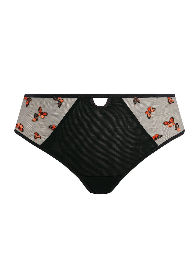 A chic and contemporary addition to any lingerie collection, uncover Elomi’s Sachi Thong. Featuring embroidered mesh side panels and a stylish strappy detailing around the back, all in our oh-so-pretty Black Butterfly colourway.