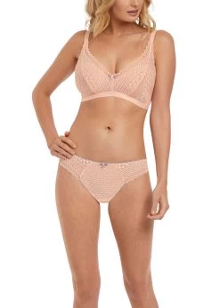 Daisy Lace is an easy wearing everyday collection featuring a stretch geometric lace with contrast colour elastics. Finishing touches include silver slider detailing at the straps, box bows and dainty charm details.