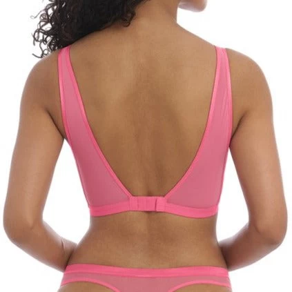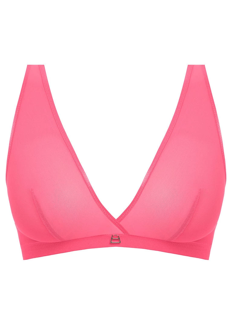 Channel all things comfort and style in Freya’s Snapshot Bralette in Pink, an elevated essential crafted with sheer triangle cups, fixed non-adjustable straps and finished with a geometric trim detail at the centre front.