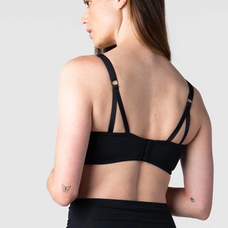 A super-soft Bamboo Wire-free Nursing Bra smoothes the bust while providing support for everyday wear.