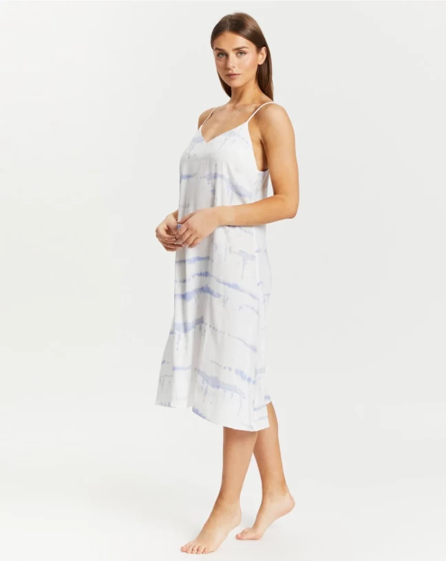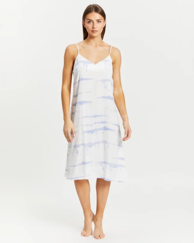 This one is for the stylish woman who want to reflect a little trend with their sleepwear choice. This very light weight nightie feels like silk. Great to sleep in even on the warmest nights. This relaxed chemise is the lovely blue and white sophisticated tie dye pattern. The nighties a relaxed fit and doesn’t cling to the body so is super flattering. The perfect dress for those lounge days.