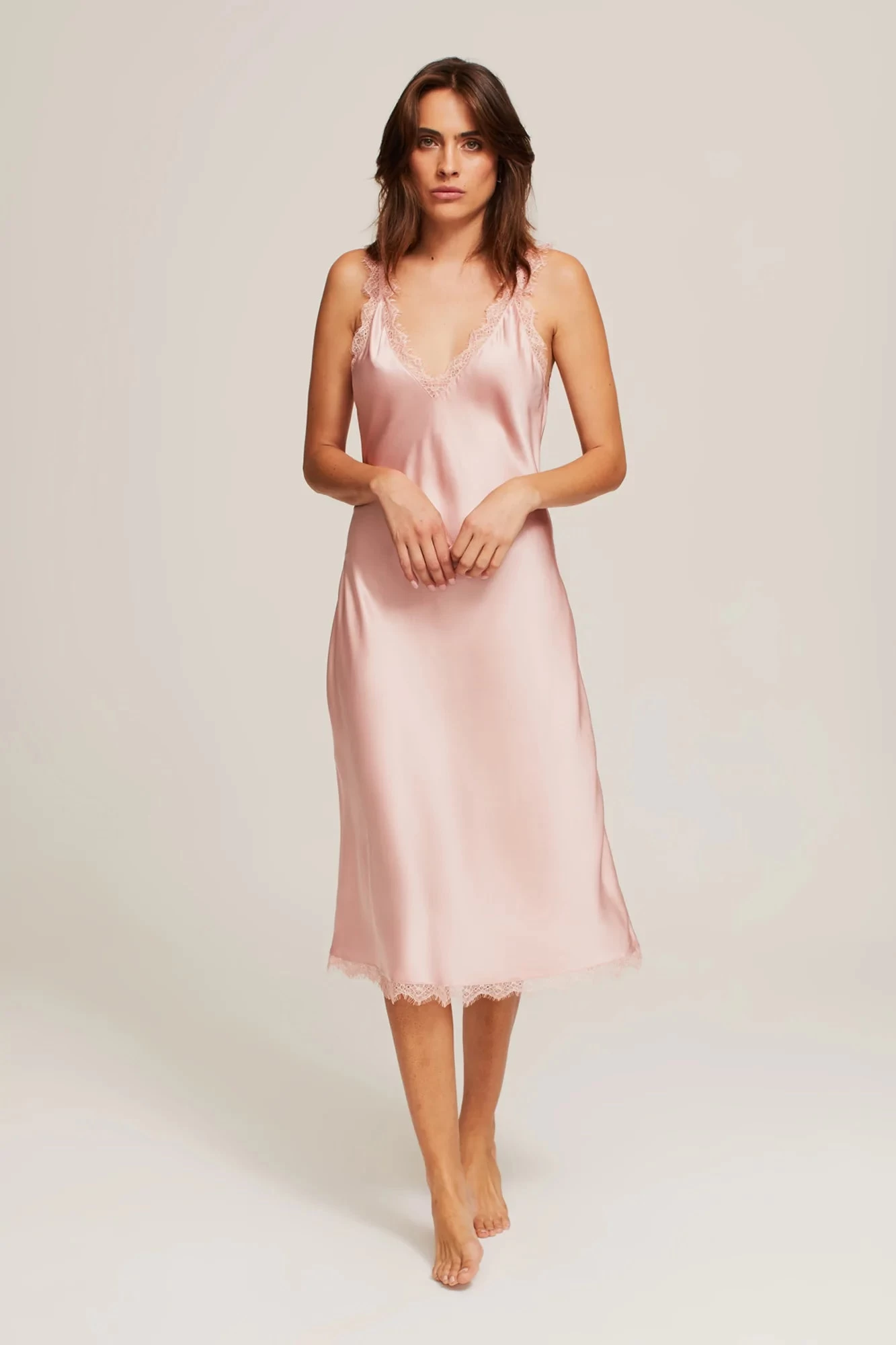 “I wouldn’t have pursued music but for trouble,” – Joni Mitchell. The Joni story is trouble; disturbance; mischievous. Silk, Lace and drop-necklines. The Joni Slip is trimmed edge-to-edge in eyelash lace. Edges meet to create shoudler straps of entirely lace. The neck and back plunge into a deep V. Falls to the mid calf. Finished with French seams throughout.