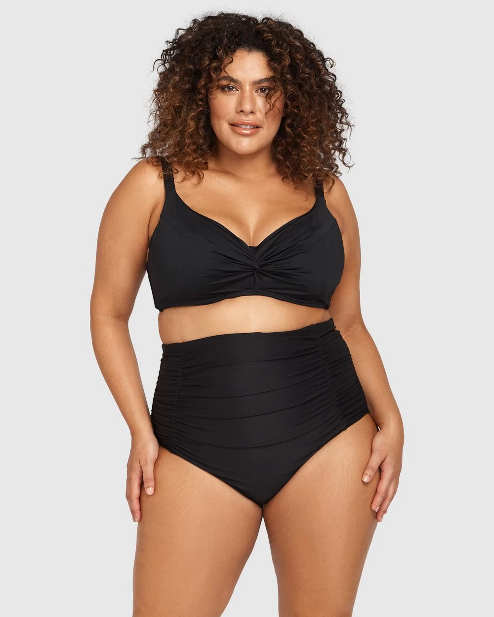 Monet is a take on a relaxed comfortable natural shape cup. This bikini top is perfect to fit your curves with D/DD underwires, full cup and back wing powermesh, soft encased side boning and internal removable soft moulded pads for body sculpting.