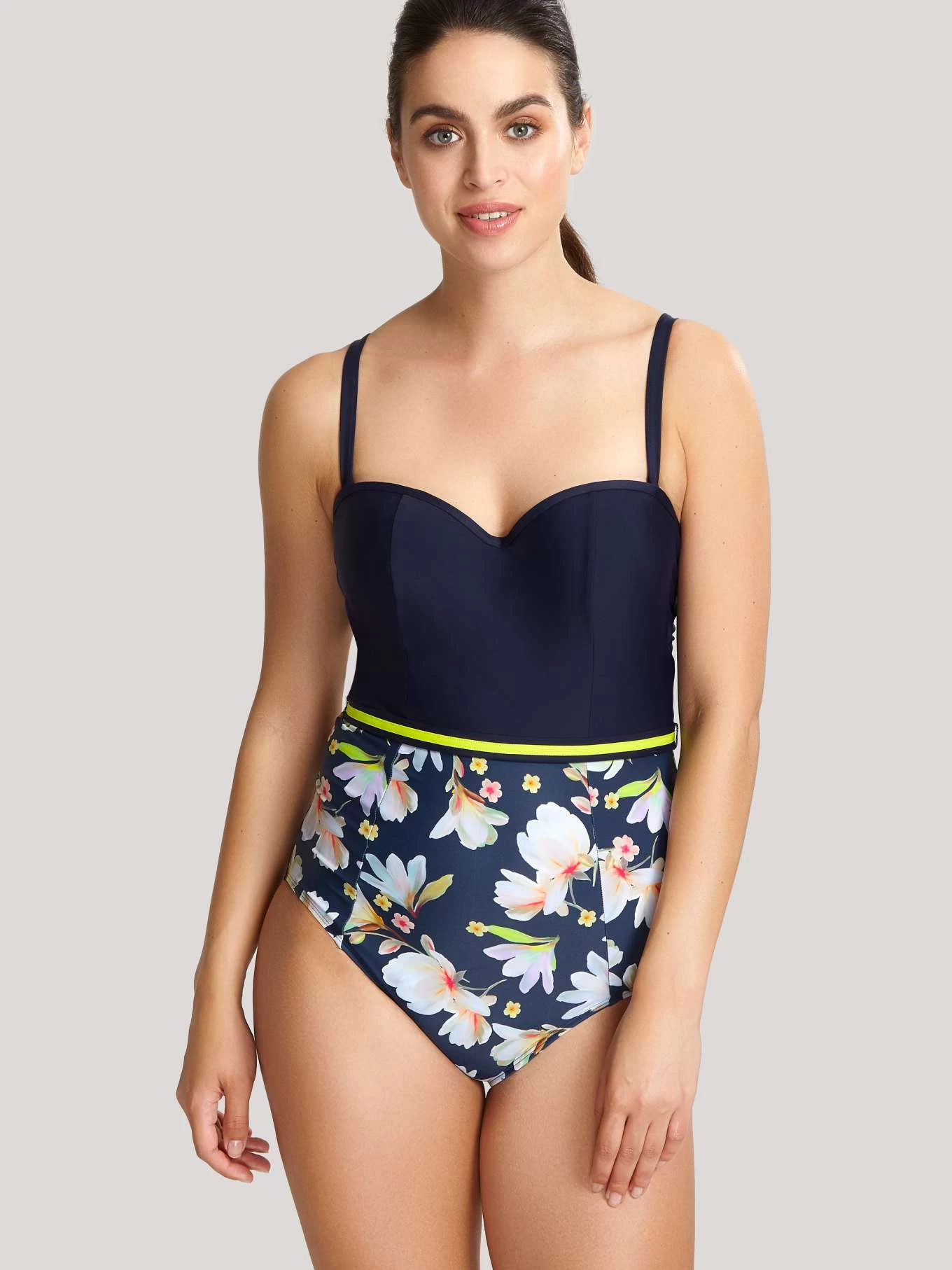 The Florentine Bandeau Swimsuit is sure to have you looking and feeling fabulous. Styled with a stunning navy floral print and a detachable belt to complete the look. This striking style has inner moulded cups providing you with a great shape and maximum support in a strapless style. Add this sophisticated swimsuit to your swimwear collection for ultimate confidence by the poolside!