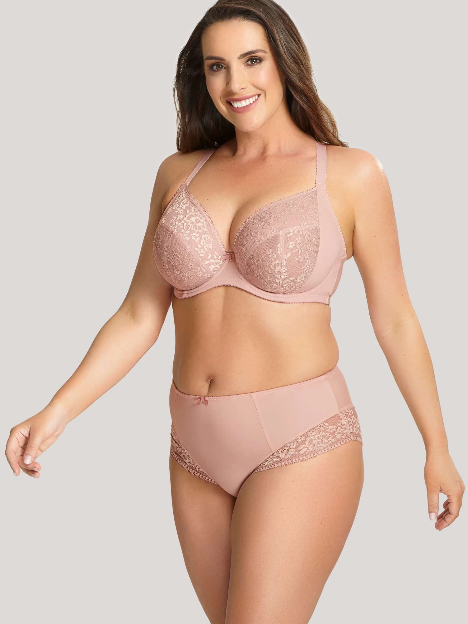 Decorated with classy lace cups and a flattering plunging neckline, this Sculptresse favourite offers a supportive fit up to a H cup. Its side slings bring your bust together for a forward shape and uplifted projection – Roxie is a perfect match for any low cut outfits. If you’re after even more lift and support, use the J-Hook and adjust your straps to a racerback, it gives you a great boost!