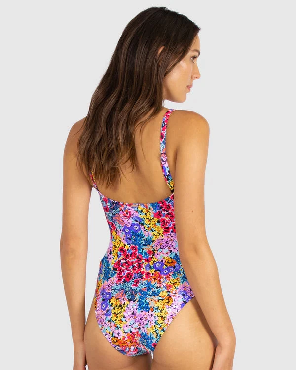 Baku’s Panama D-E Underwire One Piece features sash detail and has hidden wire & shelf support, full lined, adjustable and convertible straps.