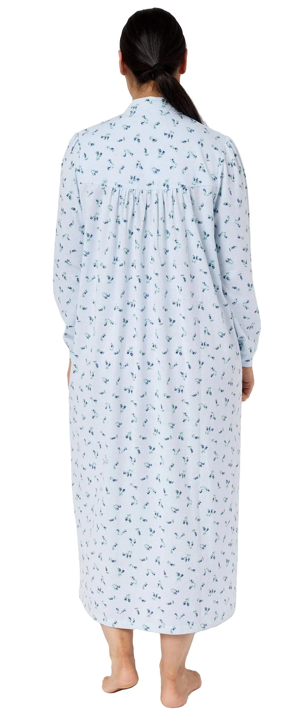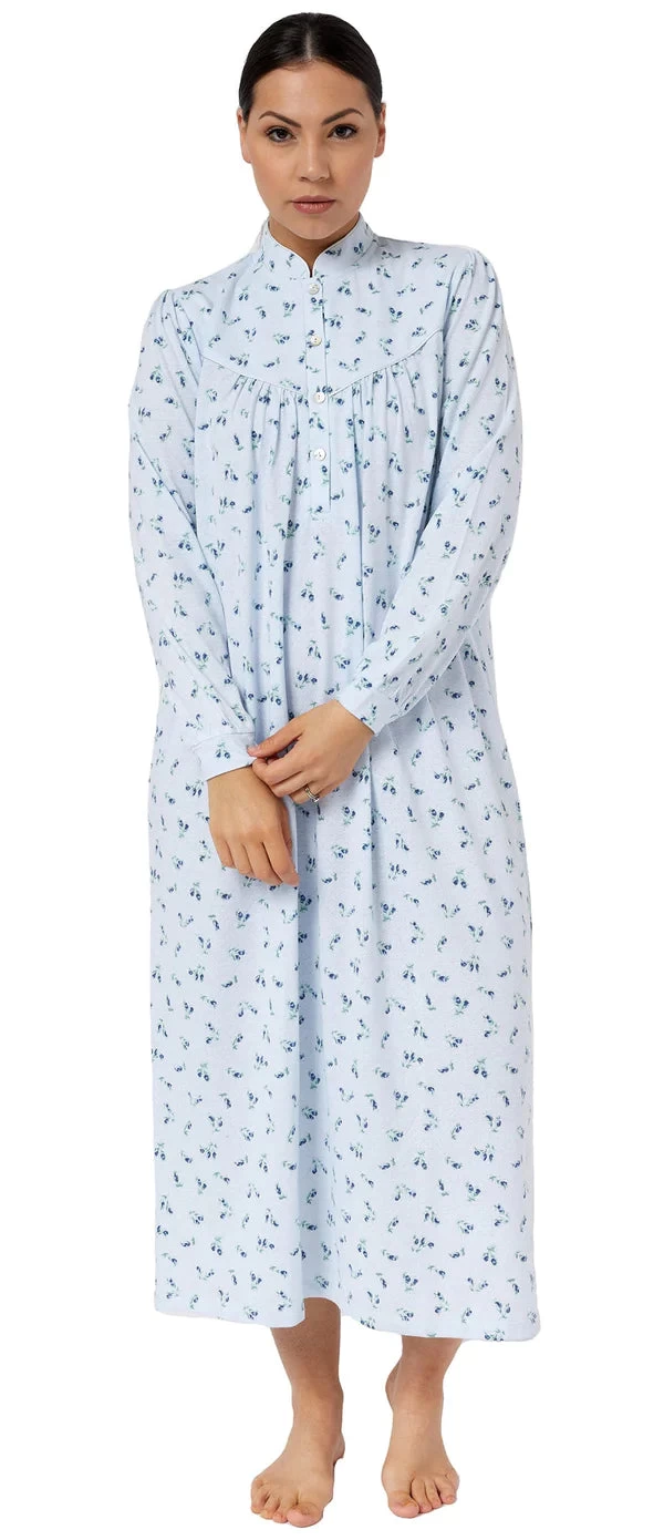 Soft, warm and easy care, this Rosebud Mandarin Nightie is perfect for keeping comfortable on warm nights. Its beautiful rosebud print, mandarin collar with piping, and button-through opening make this nightie an elegant addition to your sleepwear wardrobe.