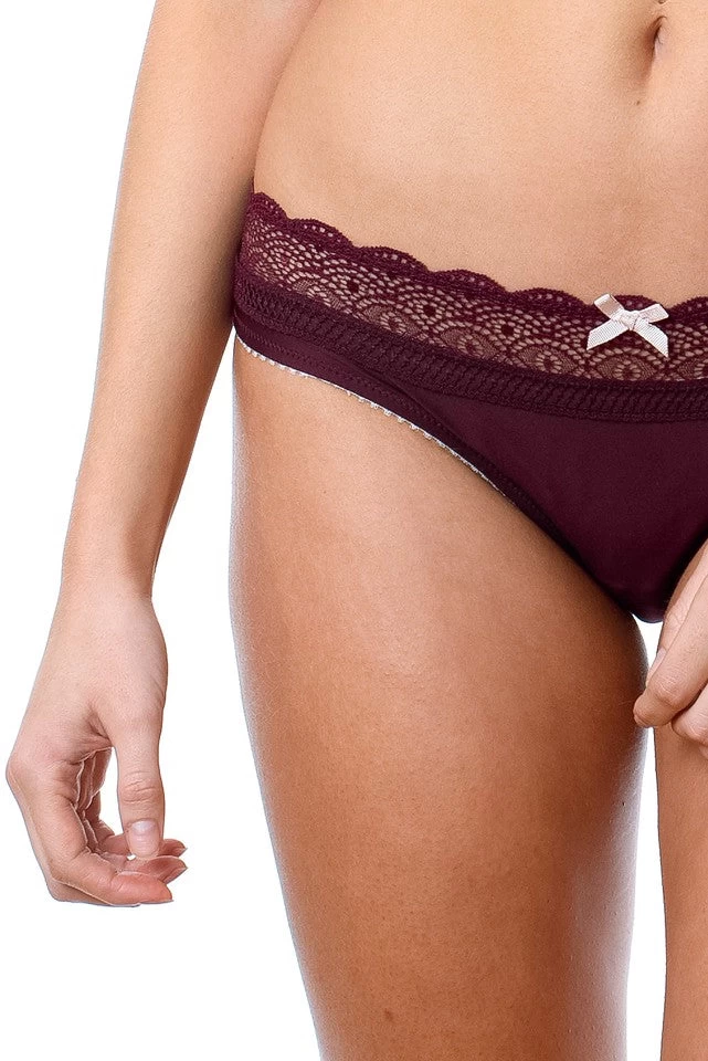 Award winning Show Off range in a commercial Fig colourway, a great alternative to black. This style offers a flexible fit and smooth profile under tops and the A-frame offers support and discreet feeding. Both bra and bikini are finished with geometric lace trim, nude linings and bow.