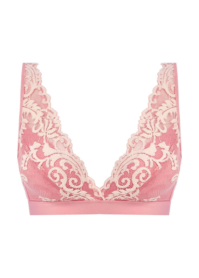 For a style designed with comfort in mind, opt for Instant Icon’s Bralette. Featuring a stretch floral lace, so decadent in its design, expect to see styles you know and love in new colourway Bridal Rose/Crystal Pink.